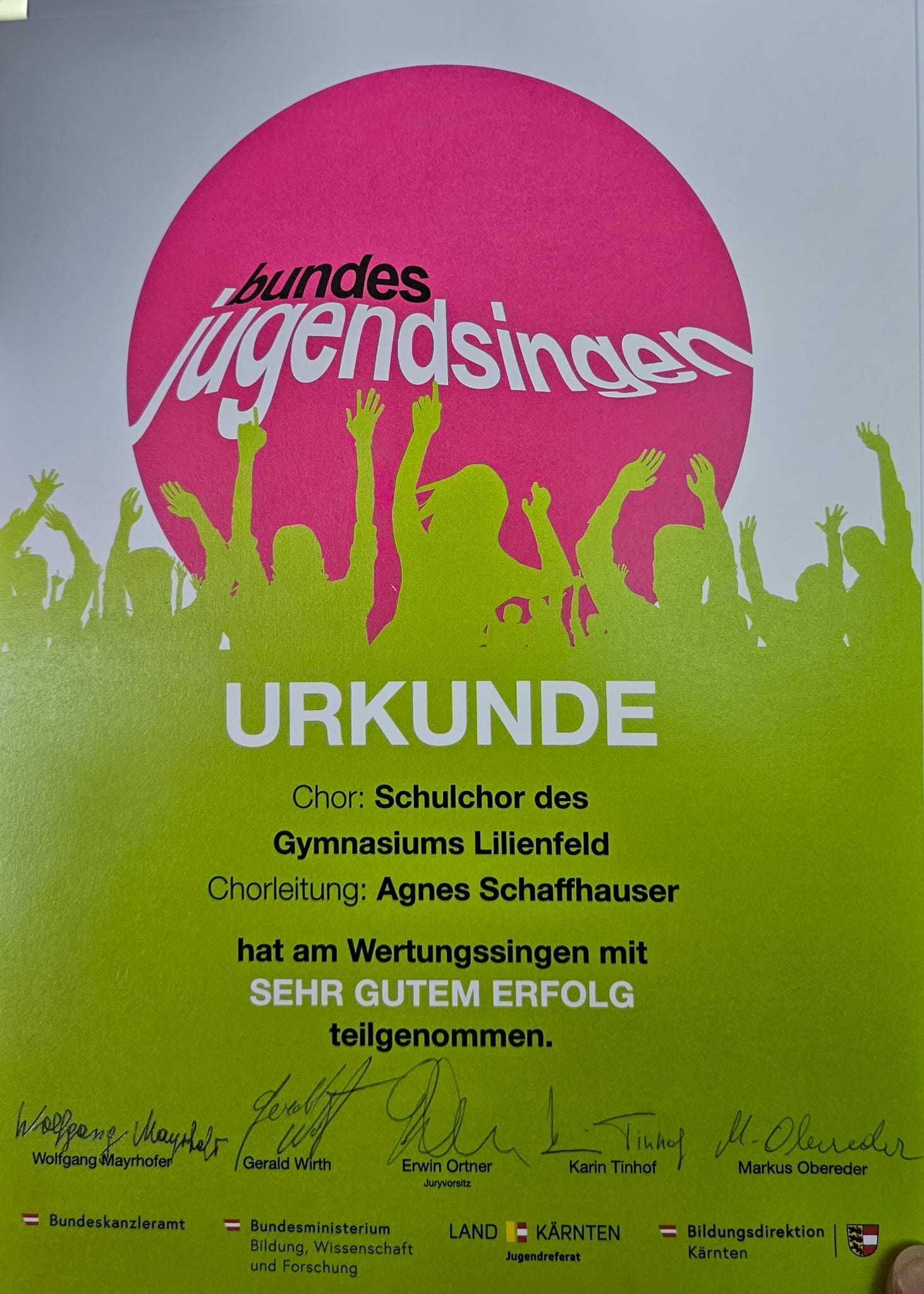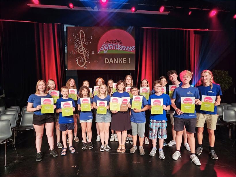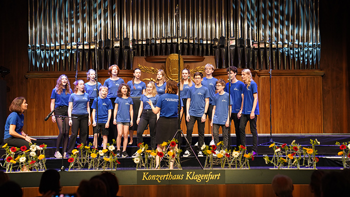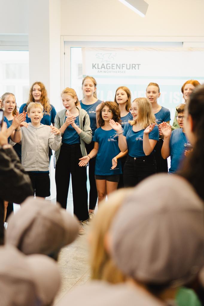 Der Schulchor des Gymnasiums Lilienfeld wurde als einer von 5 Chören aus Niederösterreich nominiert, unser Bundesland beim diesjährigen Bundesjugendsingen zu vertreten, welches von 26.-29. Juni in Klagenfurt stattfand. Dieses Chöretreffen mit freiwilligem Wertungssingen konnte pandemiebedingt erstmals seit 6 Jahren ausgetragen werden und versammelte 1200 singbegeisterte Jugendliche aus ganz Österreich. Es gilt damit als das größte Jugendchorfestival Europas. So verbrachten die 17 Lilienfelder Sängerinnen und Sänger mit ihrer Leiterin Mag. Agnes Schaffhauser und Begleitperson Mag. Marion Tiefenbacher – Lindenthal vier aufregende Tage in Kärnten, präsentierten sich bei Konzerten und offenen Singen und nahmen am freiwilligen Wettbewerb teil, in dem 28 Chöre unterschiedlichster Schulformen einer Fachjury vorsangen. Die größte Herausforderung bestand in der Präsentation einer völlig unbekannten Neukomposition, für die jeder Chor 2 Stunden Vorbereitungszeit hatte, bevor diese, sowie ein zehnminütiges Wahlprogramm, öffentlich dargeboten werden musste. Außerdem war der Schulchor mutig genug, an der „5-Minuten-Challenge“ teilzunehmen, bei der man innerhalb dieser enorm kurzen Zeitspanne vor Publikum ein neues Stück einstudieren sollte. Die Jury honorierte den ambitionierten, freudvollen Auftritt unseres noch eher unerfahrenen Schulchors, der sich beispielsweise mit der Singschule der Oper Graz oder der Jugendkantorei Salzburgs messen musste, mit dem Prädikat „mit sehr gutem Erfolg teilgenommen“ und lobte dessen Begeisterung und Freude auf der Bühne.