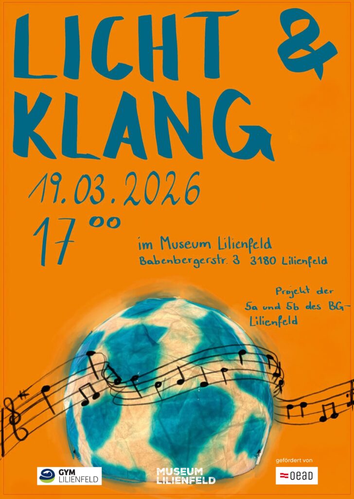 Einladung zur Präsentation des Projekts „Licht und Klang“ im Museum Lilienfeld, am 19. März 2026 um 17 Uhr. Wir freuen uns auf Dein Kommen!