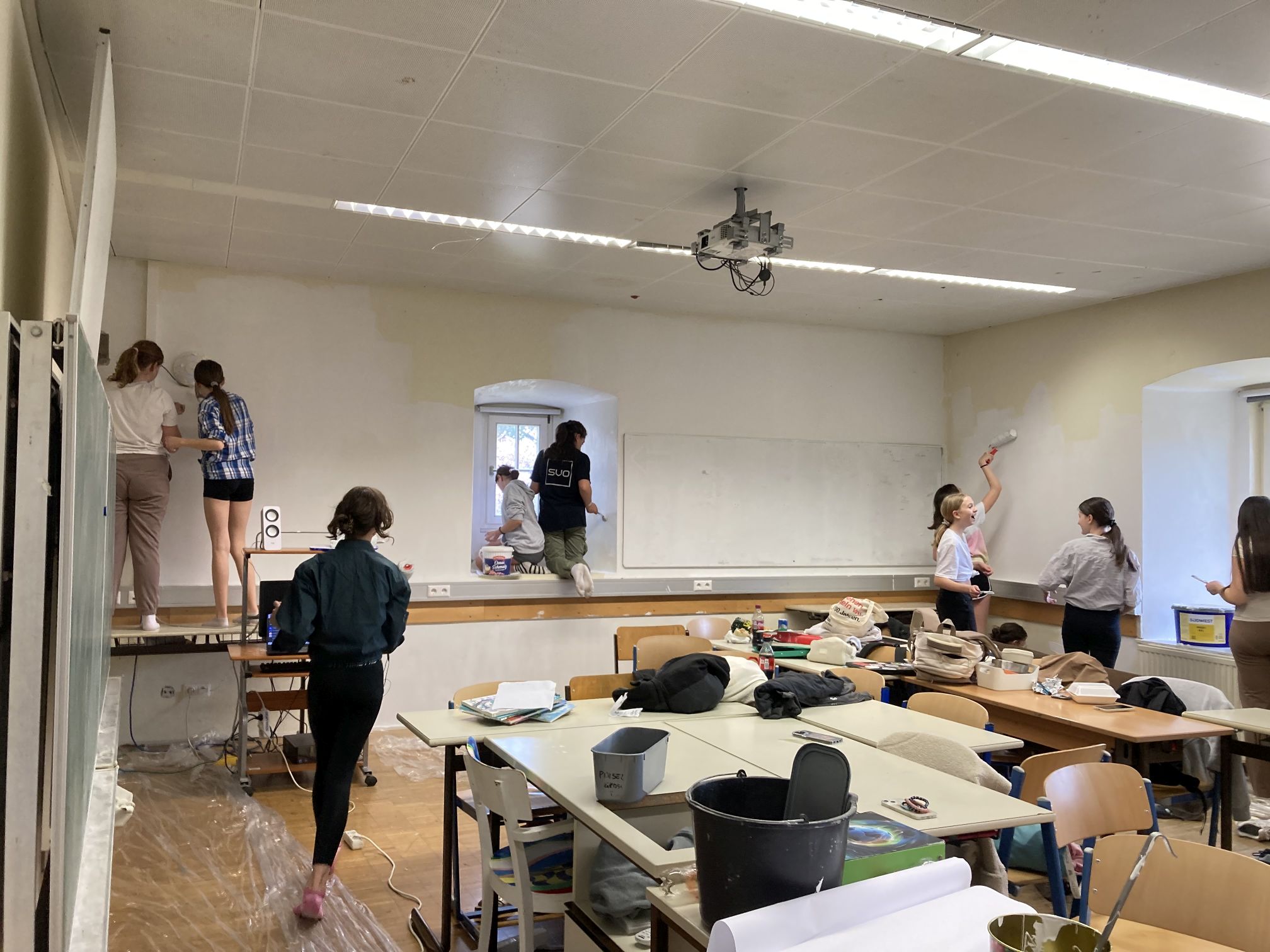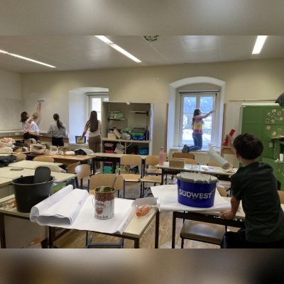 Die Schülerinnen und Schüler der 3c und der 3a Klasse wünschten sich ein neues Raumdesign ihrer Stammklassen, welches sie am 14. April 2026 entschlossen umgesetzt haben. Die Farbe dafür stellte die Schule zur Verfügung (inkl. Zubehör).