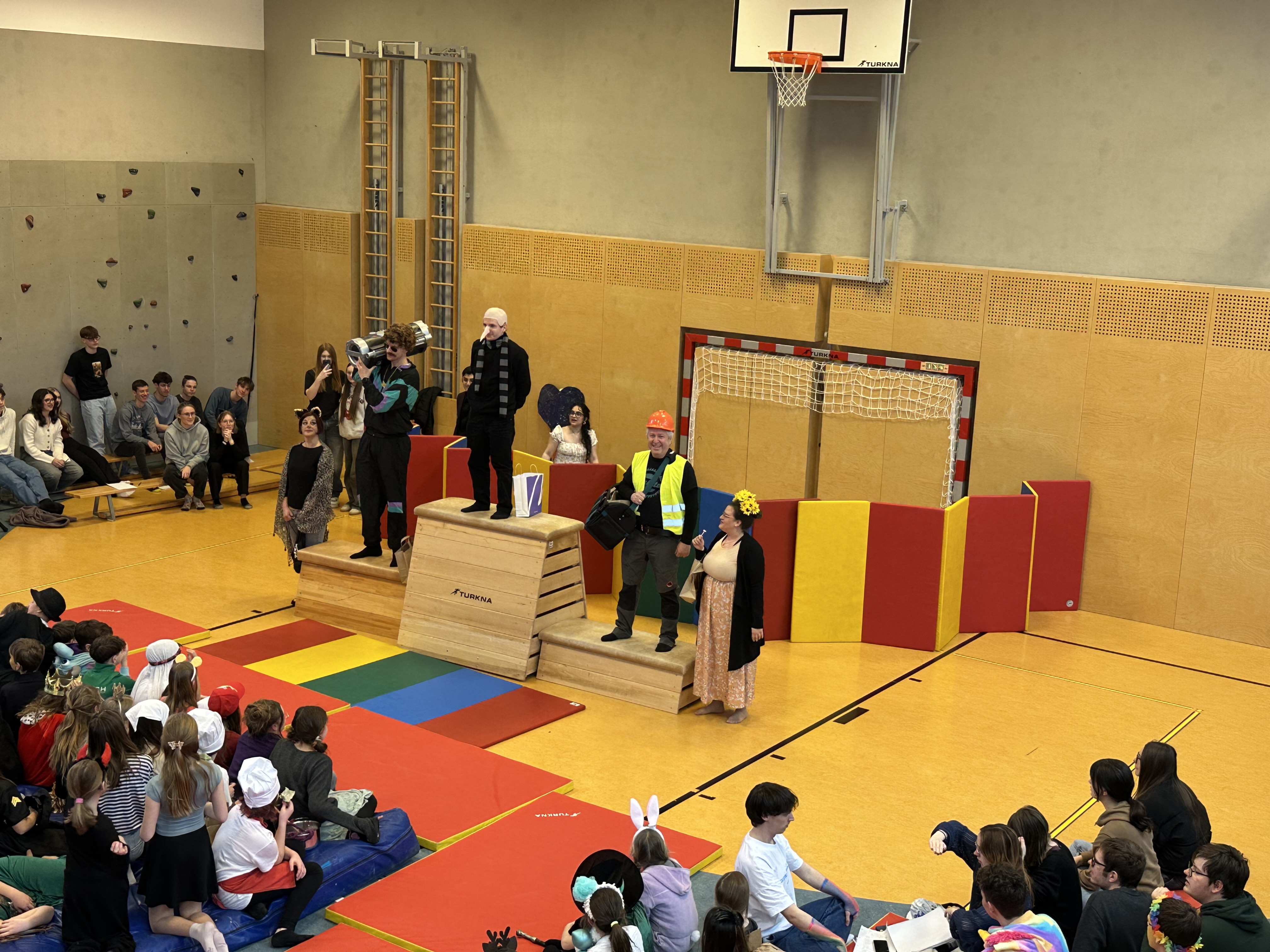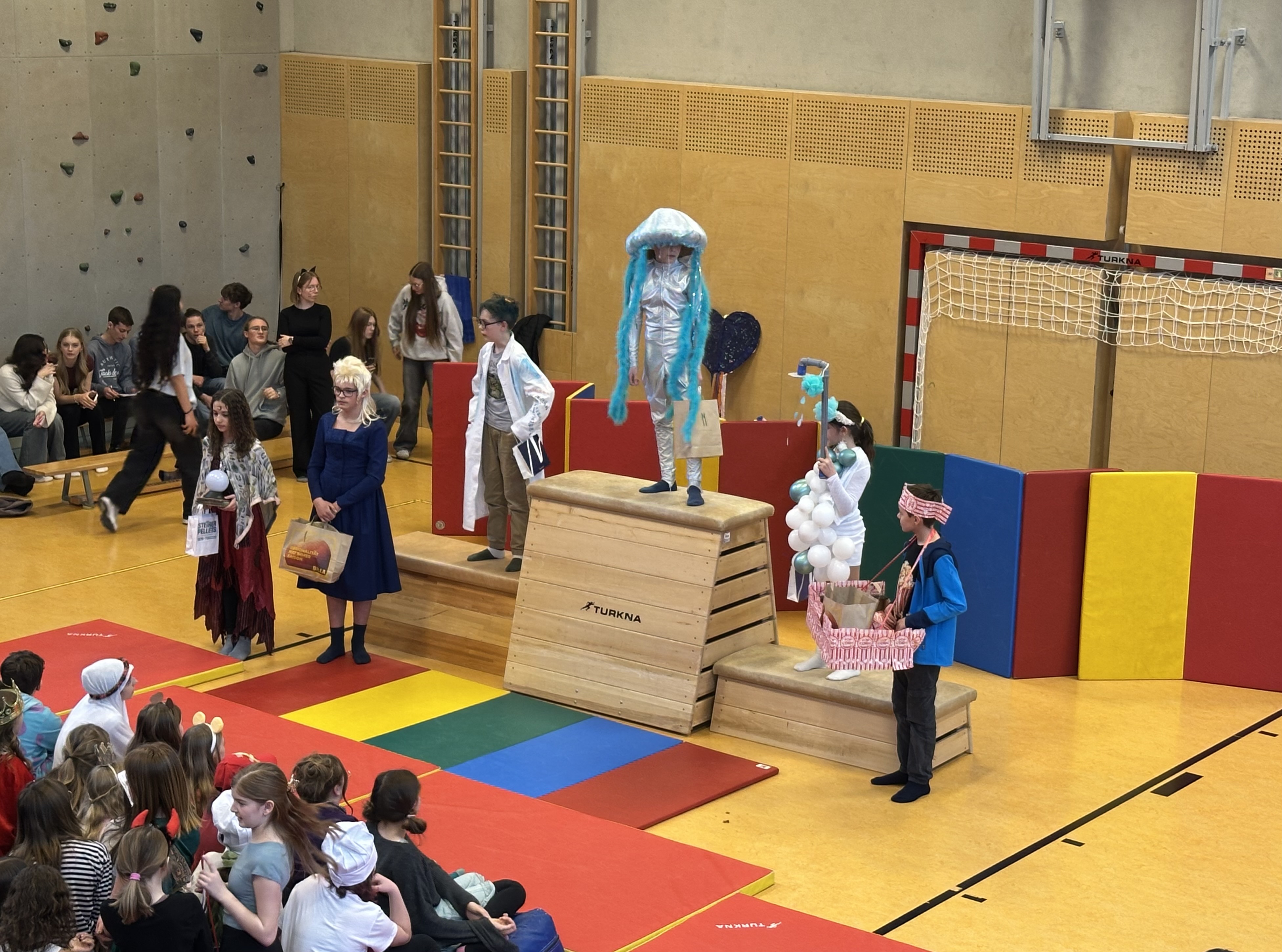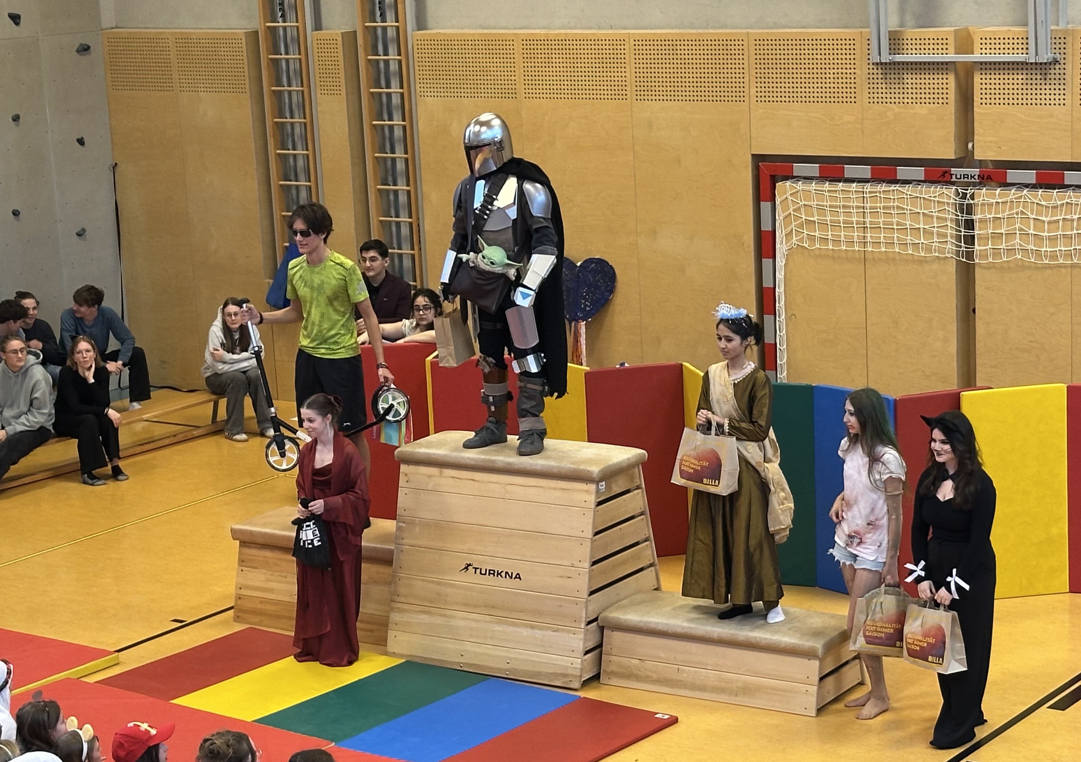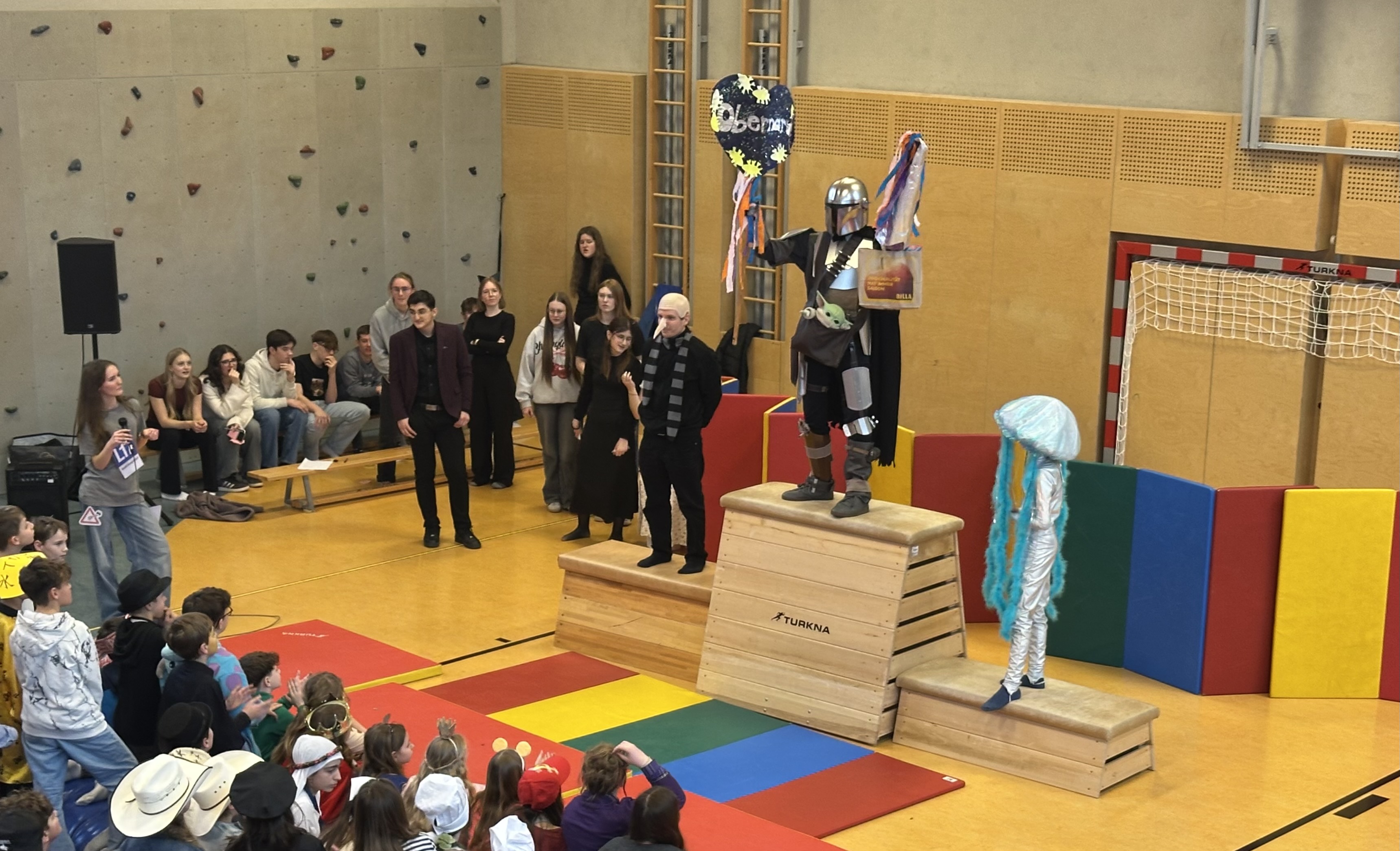 Am Faschingsdienstag hat die alljährliche Faschingsfeier im Turnsaal stattgefunden. Sowohl die Schülerinnen und Schüler als auch die Lehrpersonen konnten in verschiedenen Kategorien antreten, ihre Faschingskostüme präsentieren und Preise gewinnen.